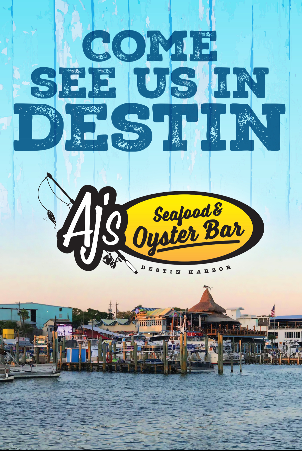 Since 1984, AJ’s Seafood and Oyster Bar has been serving cold Gulf Coast oysters and cool libations. What began as a popular local hang out known for fresh oysters and cold beer has grown into one of the most iconic “hot spots” on the Destin Harbor. From our humble beginning shucking oysters off the deck behind a small trailer on the Destin Harbor, we are proud to have grown to four locations along Florida’s Emerald Coast, serving the freshest seafood, best live music and most exciting water activities on the Emerald Coast.